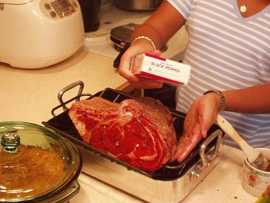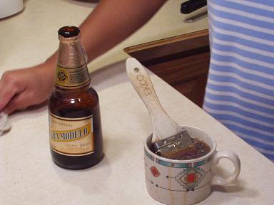 にんにくを刺し終わったところで、次はハケでしょうゆを塗ります。