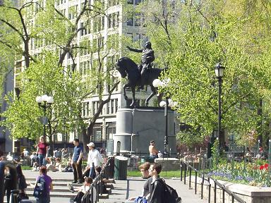 SOHOの街並み、ユニオンスクエアの騎馬像、エンパイアステートビル遠望