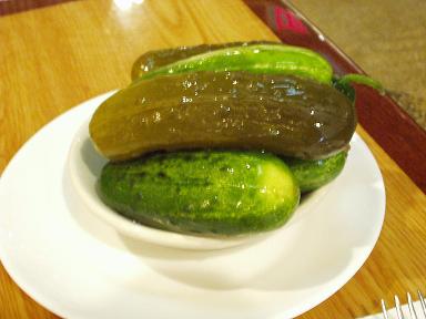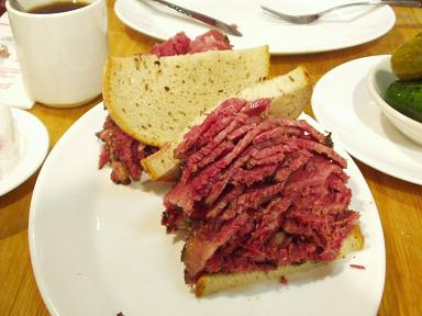 歴史を感じさせる店内、これでもか!のパストラミサンド、ピクルスも巨大