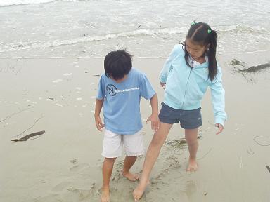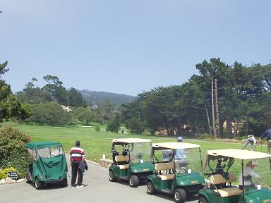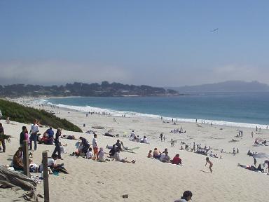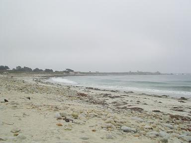 モントレーの海岸、砂と戯れるお子様、ぺブルピーチ・ゴルフリンクスの1ホールが見えた!