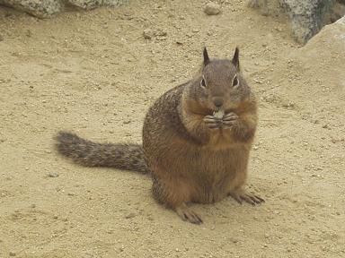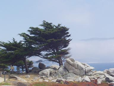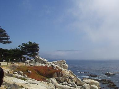 リスさんと遭遇、17マイルドライブの風光明媚な海岸(松の木が海風で倒れそう・・・)