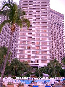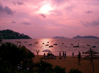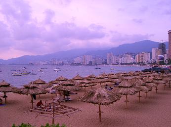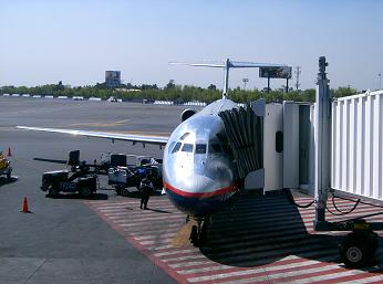 古そうなキャブで空港へ、ピンクのアカプルコ空港、エアロメヒコに乗って